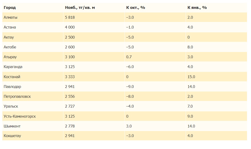 Krisha.kz, понижение цен произошло в девяти городах из 13, где проводился мониторинг.