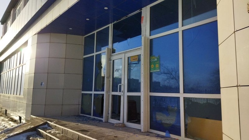 В бывшем супермаркете «Altyn food» в 5 микрорайоне, за торговым центром «Волна», по словам жителей, неизвестные разбили окна и стекла на входной двери.