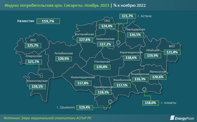 В Мангистауской области цена на сигареты поднялась на 20,1%.