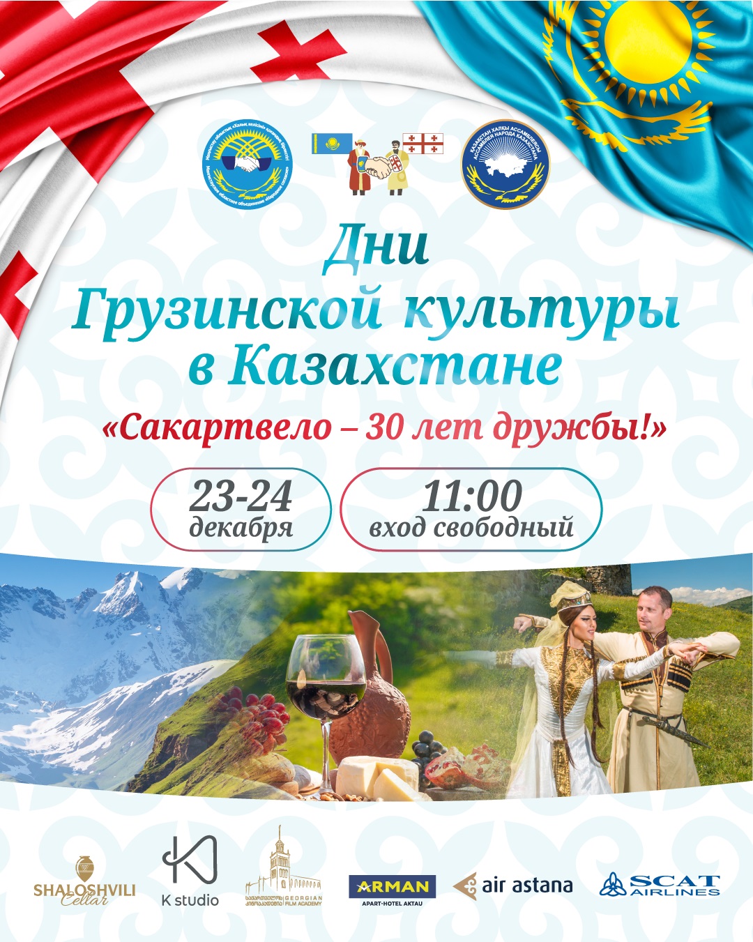 Организаторы фестиваля рассказали, что 23 и 24 декабря в Актау пройдёт фестиваль «Сакартвело - 30 лет дружбы!», посвящённый дням грузинской культуры в Казахстане.