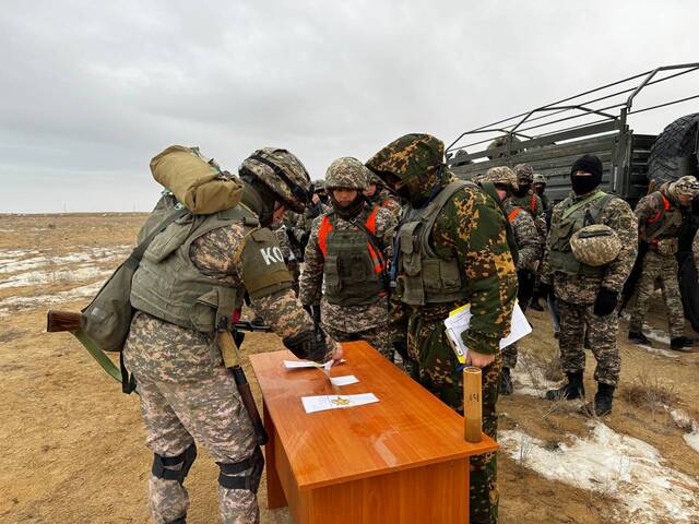 «Военнослужащие отрабатывают навыки ведения современного общевойскового боя, действия в обороне, в наступлении и в ходе ведения инженерной разведки местности, 30% занятий проводятся в ночных условиях. При выполнении боевых стрельб нужно оценивать работу командира отделения по его умению быстро, правильно и четко отдавать приказ подчинённому личному составу. Личный состав нашего батальона готов к выполнению любой поставленной боевой задачи, – сообщил командир 1 штурмового батальона, гвардии майор Фархат Манабаев.