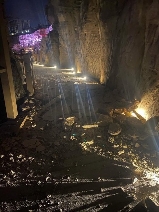 распространяется видео, на котором запечатлены последствия обвала каменной породы на Скальной тропе.