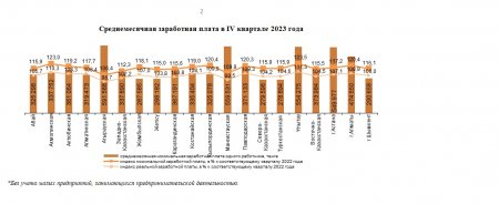 По сравнению с соответствующим кварталом 2022 года наибольший рост среднемесячной заработной платы зафиксирован в отраслях финансовой и страховой деятельности – 29,7%, информации и связи – 23,2%, искусства, развлечения и отдыха – 20,8%. В образовании рост среднемесячной заработной платы составил 18,6%, в здравоохранении и социальном обслуживании населения – 18,2%.