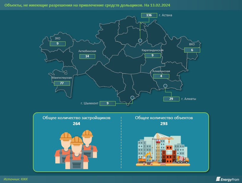 В конце прошлого года «Казахстанская Жилищная Компания» (КЖК) опубликовала исследование, в котором отмечается, что по состоянию на август 2023 года доля «серого» рынка долевого строительства в РК составила 68% (397 из 586 обследованных объектов). Это все те объекты, которые привлекают средства дольщиков незаконно. Такие цифры говорят не просто об актуальности проблемы, а о её катастрофическом масштабе.