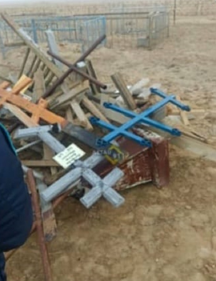 - То, что происходит на православном кладбище, которое находится в Кызылсае, это ужасно. Там похоронены наши родные, близкие и друзья. Проигнорировать это нельзя, происходит настоящий вандализм. Все кресты выкорчевали с могил и бросили прям там же, - рассказал житель города.
