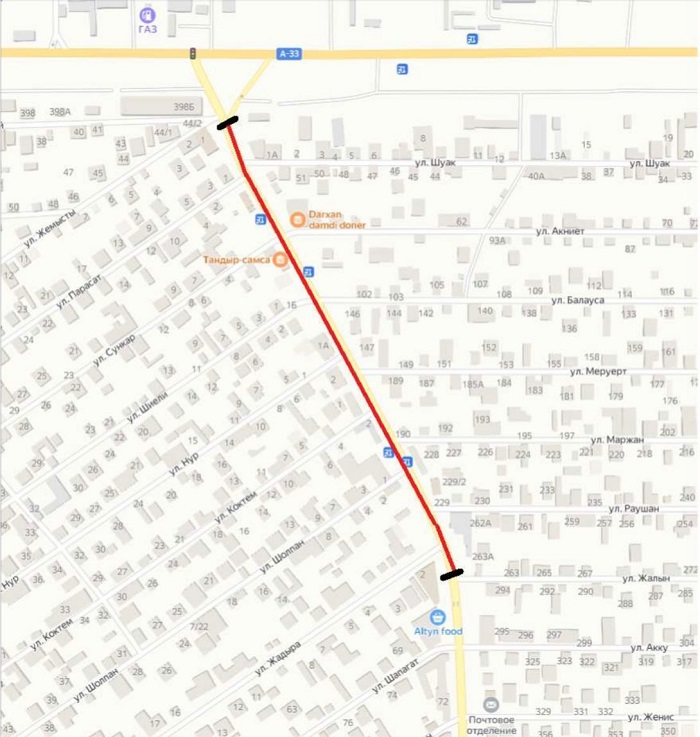 - В этой связи дорога между продуктовым магазином «Татьяна» и супермаркетом «Altyn food» будет временно закрыта с 4 марта по 30 апреля, - говорится в сообщении.