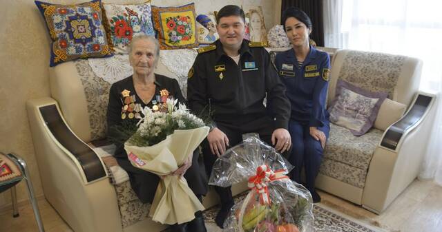 В преддверии Международного женского дня военные моряки под руководством командира базы, капитана 2 ранга Бауыржана Муратулы, решили сделать особое поздравление ветерану Великой Отечественной войны - 96-летней Ольге Заривняк.