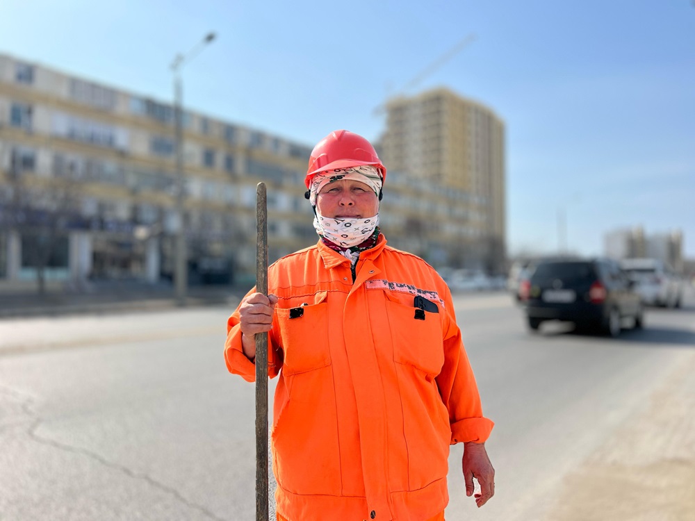 Мать 8 детей и сотрудник коммунальной компании ТОО «Компания Строй Инвест 2020» Тойдык Абдуллаева одна из тех, кто отвечает за чистоту улиц города. Ежедневно она убирает территорию трех микрорайонов.