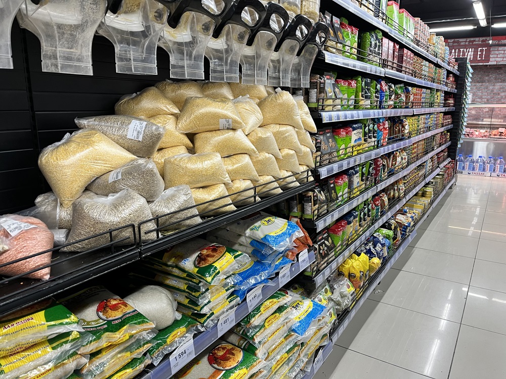 Итого: 5 487 тенге.Супермаркет «Дана» в 5 микрорайоне предлагает 1 килограмм говядины за 3 577 тенге. Стоит отметить, что в торговой точке на момент посещения продавалось только замороженное мясо. Один литр айрана отдают за 541 тенге, 60 граммов курта в вакуумной упаковке за 396 тенге, 1 килограмм соли за 76 тенге. Что касается круп, то 1 килограмм риса стоит 541 тенге, пачка перловой крупы (750 г) – 240 тенге, 1 килограмм развесного пшена – 248 тенге.