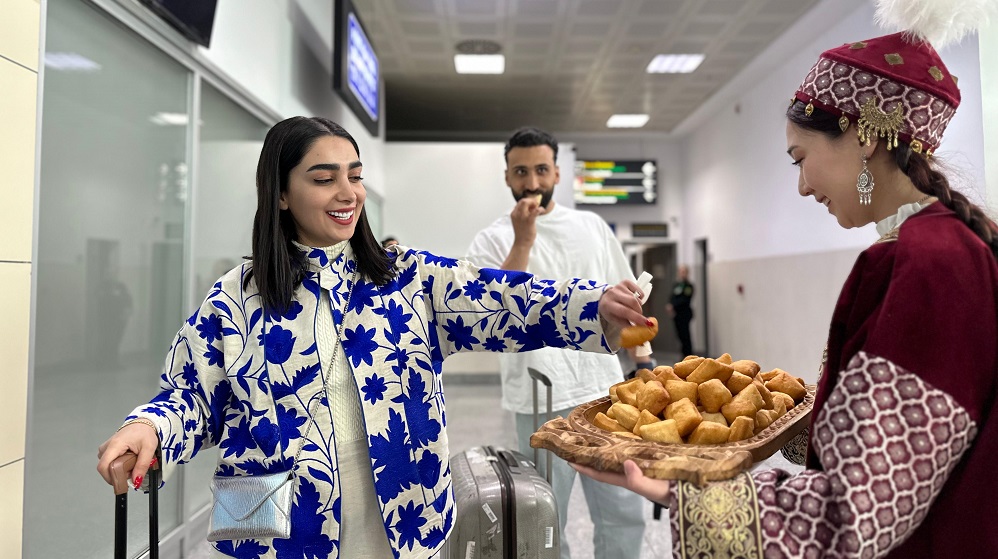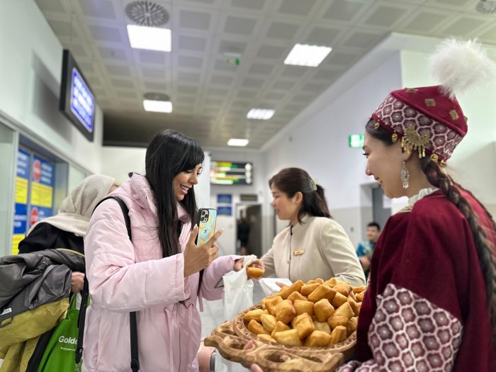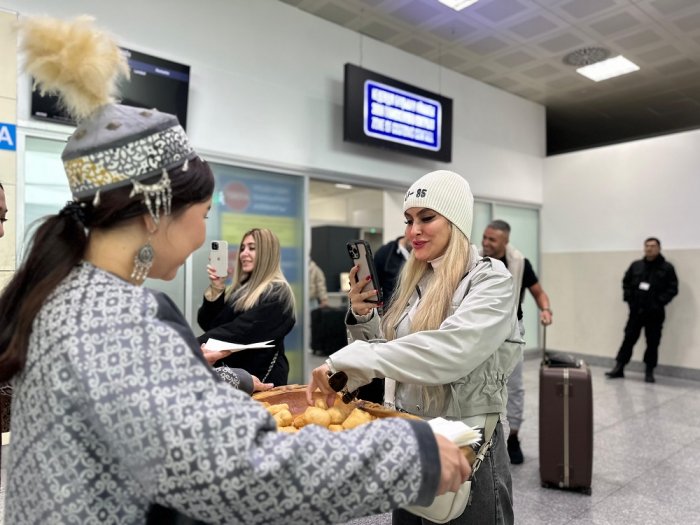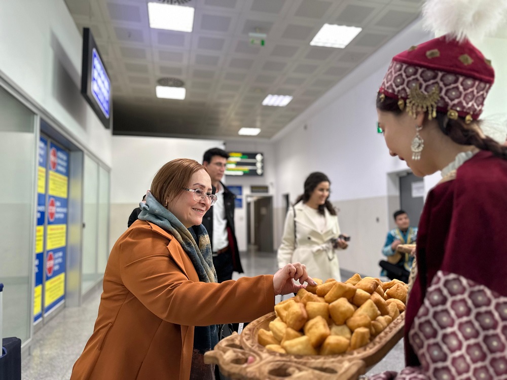Туристов встречали артисты с песнями и баурсаками. Всего Актау с начала года посетили около 14 тысяч туристов из-за рубежа.