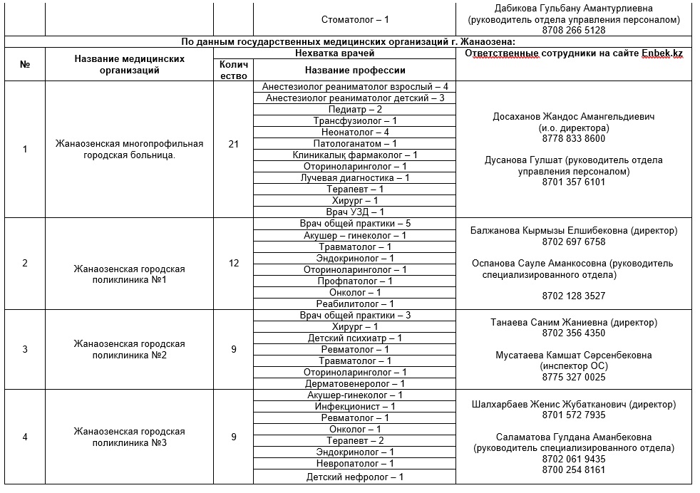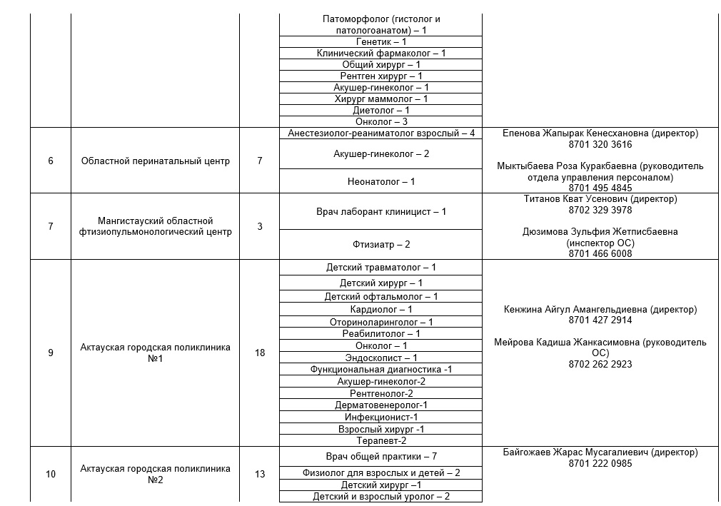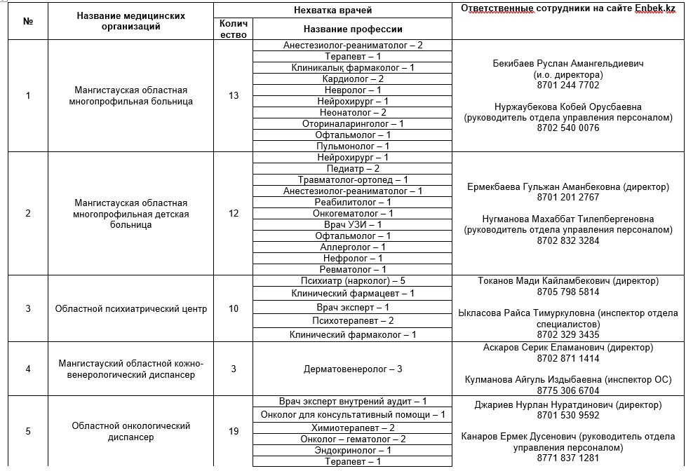 Ниже в таблицах указаны вакантные места, а также телефоны, по которым медицинские сотрудники могут обратиться для трудоустройства.