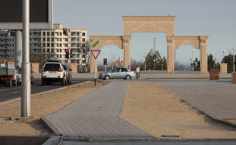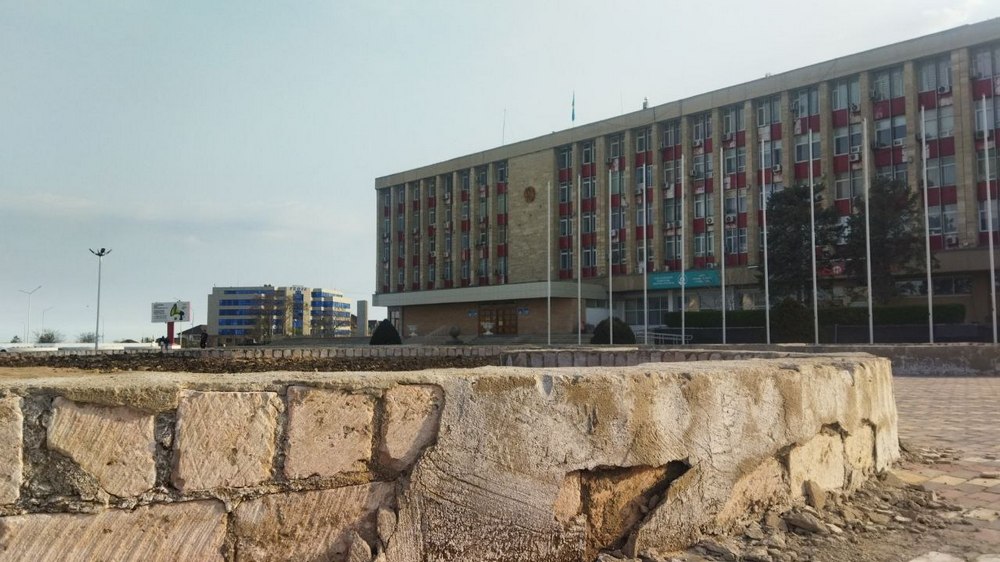 Плитка на площади у здания акимата уже уложена. Правда, чем будут заполнять пространство с песком по обе стороны тротуарной дорожки, пока неизвестно.