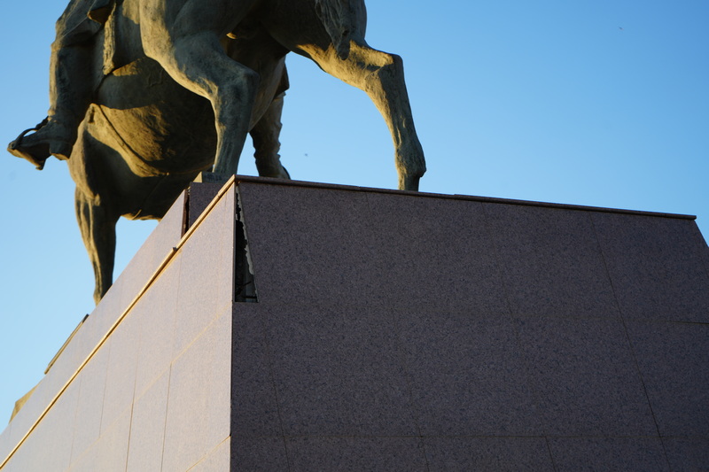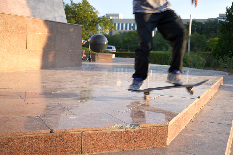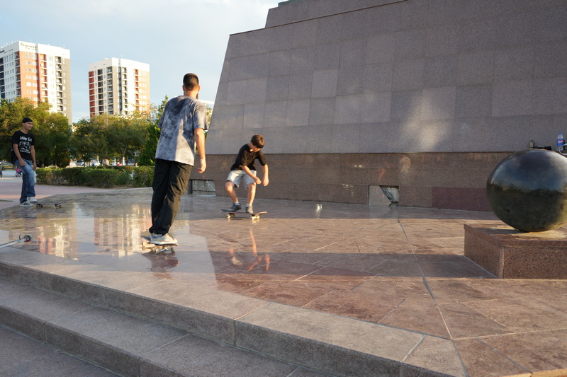 Подножие памятника на площади Ынтымак облюбовали подростки, катающиеся на скейтах, роликах, самокатах и велосипедах.