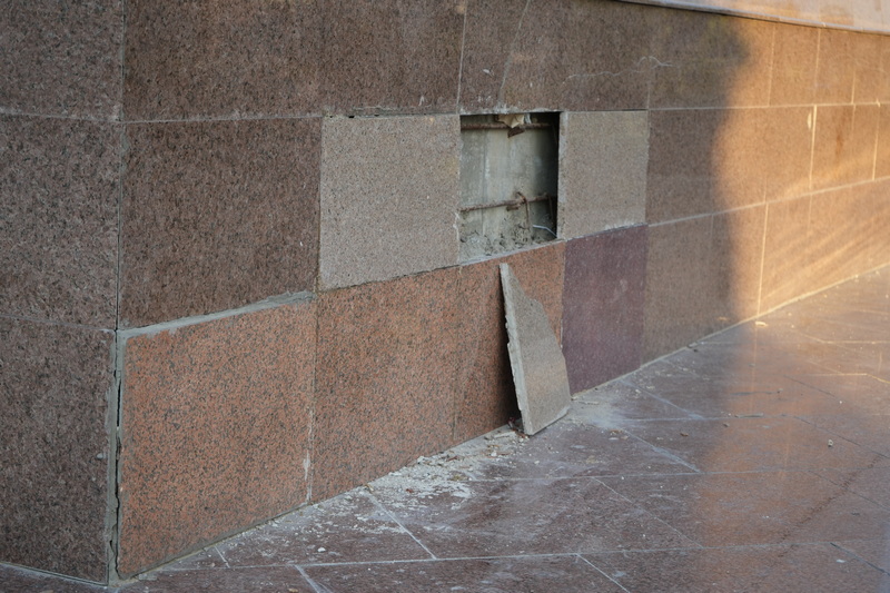 Сколы на плитках, как считают местные жители, произошли по их вине.