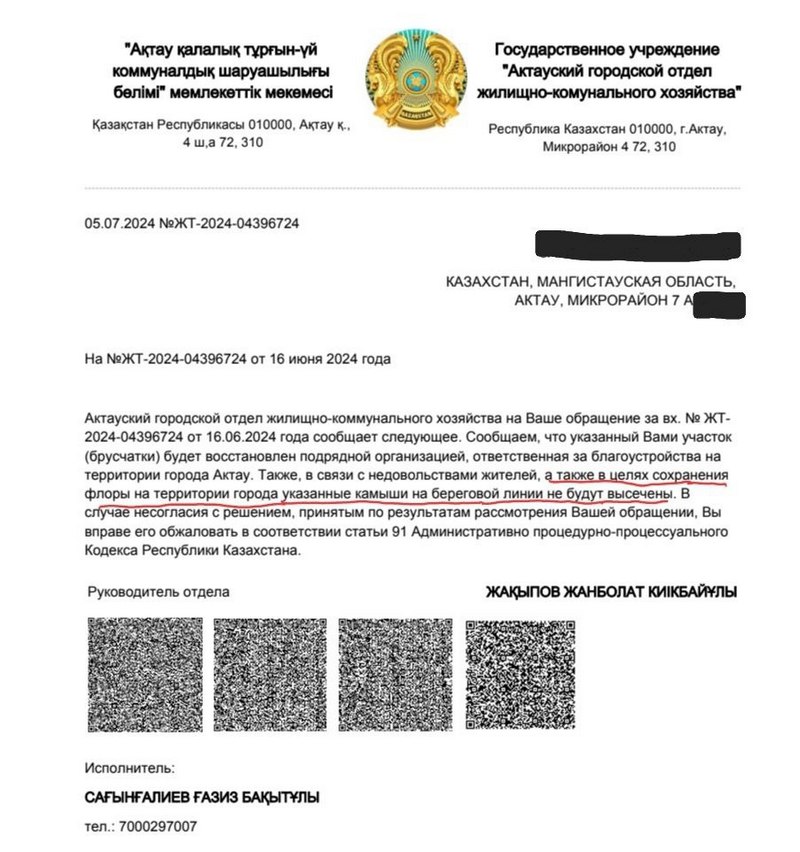 Набережную 7А микрорайона в своем обращении горожанин назвал притоном для бомжей и местом для сброса мусора, отметив, что это центр Актау.
