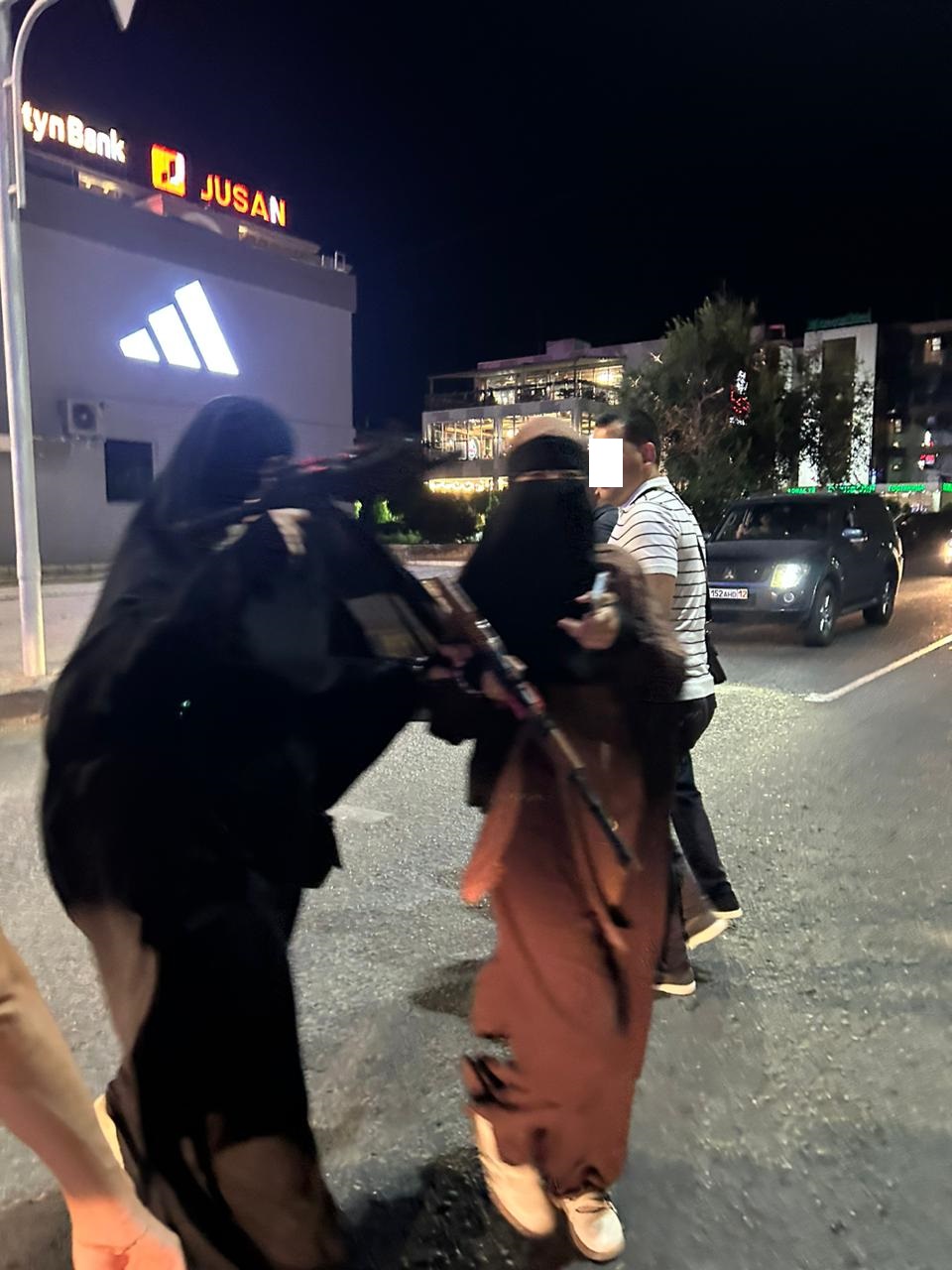 Мы переходили дорогу из 5-го в 4 микрорайон. Две полностью покрытые мадам шли и «стреляли» из этих автоматов. Супруг успел их сфотографировать: на кадрах видно, как они целились в переходящего поблизости с нами мужчину. Их действия сопровождались смехом. Я, если честно, от неожиданности сильно напряглась, так как сначала не поняла, были ли это шуточные автоматы. Потом только услышала звуки «выстрелов», которые были похожи на те, что издают игрушечные пистолеты, - рассказала Мария.