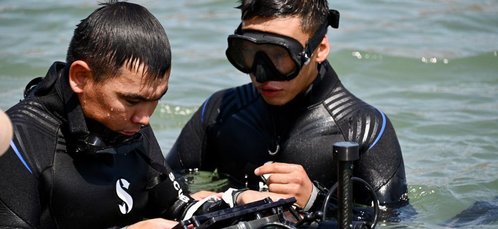 Моряки ВМС из Актау проходят обучение по подводному разминированию, ориентированию и поиску, водолазно-техническим работам на участке побережья Капшагайского водохранилища, на территории войсковой части 20030. Об этом сообщает пресс-служба Актауского гарнизона.