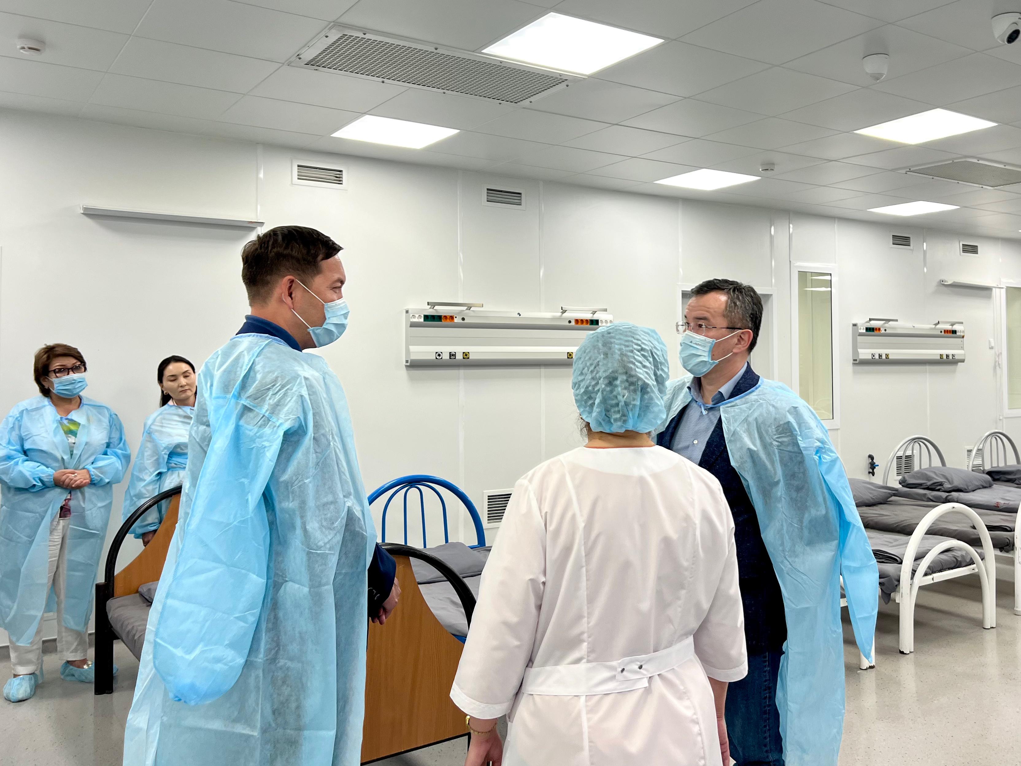 Вице-министр Ержан Нурлыбаев, заместитель акима Мангистауской области Звира Есбергенова, начальник управления здравоохранения Мангистауской области Бекболат Избасаров посетили областную детскую инфекционную больницу и ознакомились с состоянием школьников, поступивших с пищевым отравлением.