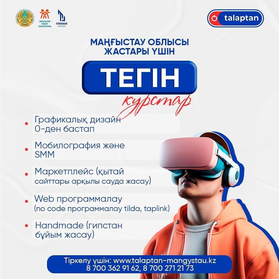 В рамках социального проекта «Талаптан» управления по вопросам молодежной политики Мангистауской области начаты курсы обучения современным специальностям, сообщает Центр общественных коммуникаций со ссылкой на пресс-службу областного управления по вопросам молодежной политики.