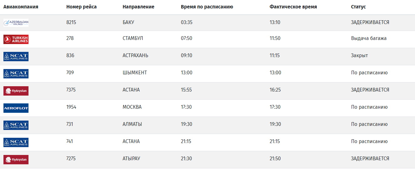 Судя по онлайн-табло задерживается вылет в Баку, Астану и Атырау, а также рейс из Астаны.