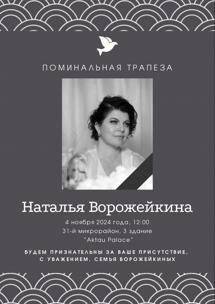 Поминальная трапеза пройдет в понедельник, 4 ноября, в 12:00 часов в банкетном зале «Aktau Palace».