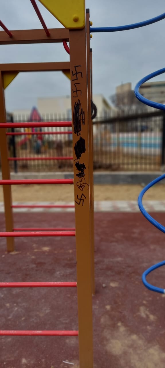 «Сердце кровью обливается. Акимат только поменял детям качели. Хорошие сделали, мы так этого ждали. И вот, вам результат. Свастика, голые женщины, какие-то карикатуры. Откровенное вредительство. Куда идти и к кому обращаться ума не приложу. За руку никого не поймали и мне жаль, что среди нас живут такие люди. Надо беречь, преумножать, а не портить и гадить.», - считает руководитель кооператива собственников квартир 6 микрорайона Актау.