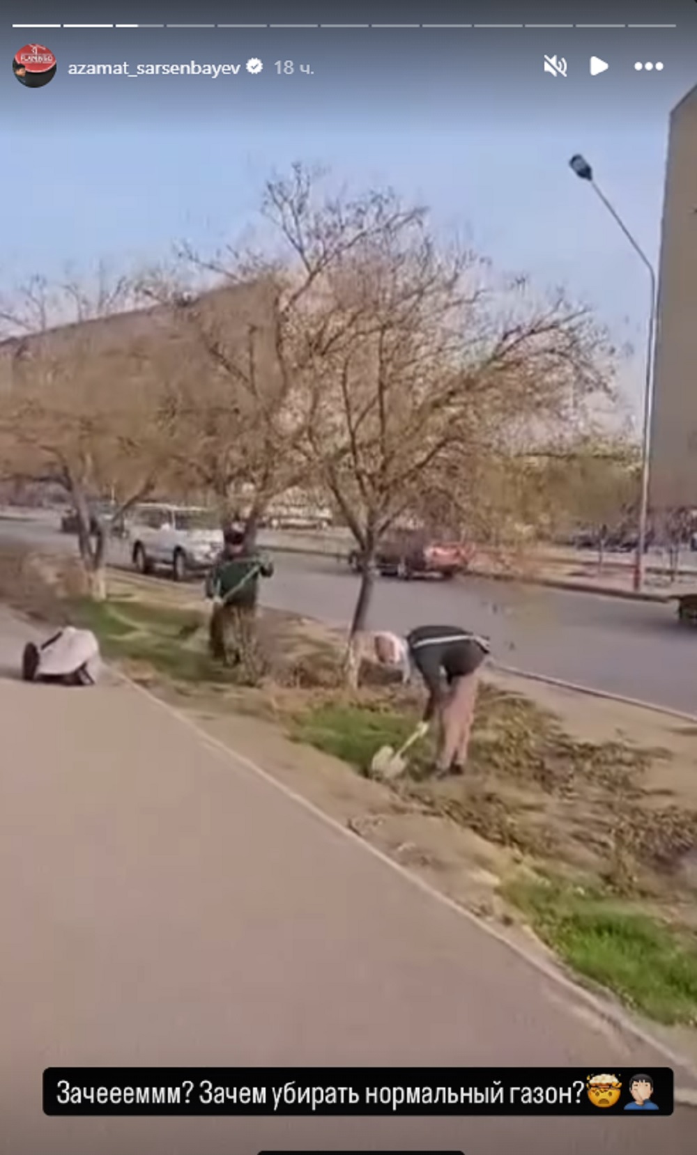 Удаление травы вызвало недовольство и у блогера из Актау Азамата Сарсенбаева. В своем посте в социальной сети он выразил возмущение:
