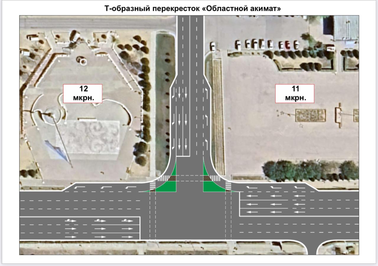 На фото, предоставленном Актауским городским отделом пассажирского транспорта и автомобильных дорог, видно, что правые съезды будут сделаны с двух сторон, в 11 и 12 микрорайонах.