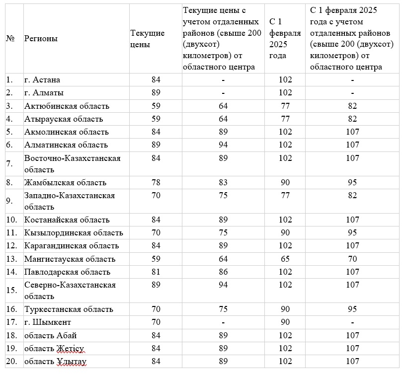 Теперь, согласно проекту приказа, предельная оптовая цена на сжиженный газ будет повышена c 45 158 тенге до 51 932 тенге за тонну. При этом предельная розничная цена увеличится в районе от 6 до 21 тенге, в зависимости от регионов.