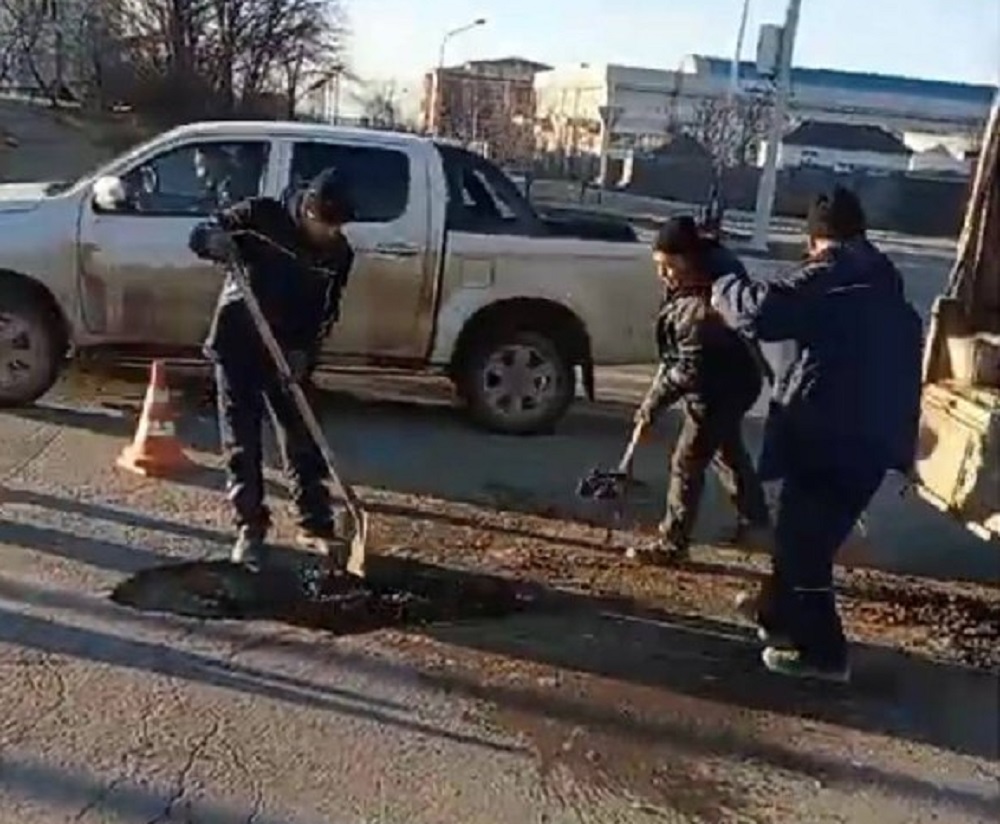 В Актауском городском акимате заявили, что в зимний период в областном центре для обеспечения безопасности дорожного движения проводится ямочный ремонт. В работах используется холодный асфальт.