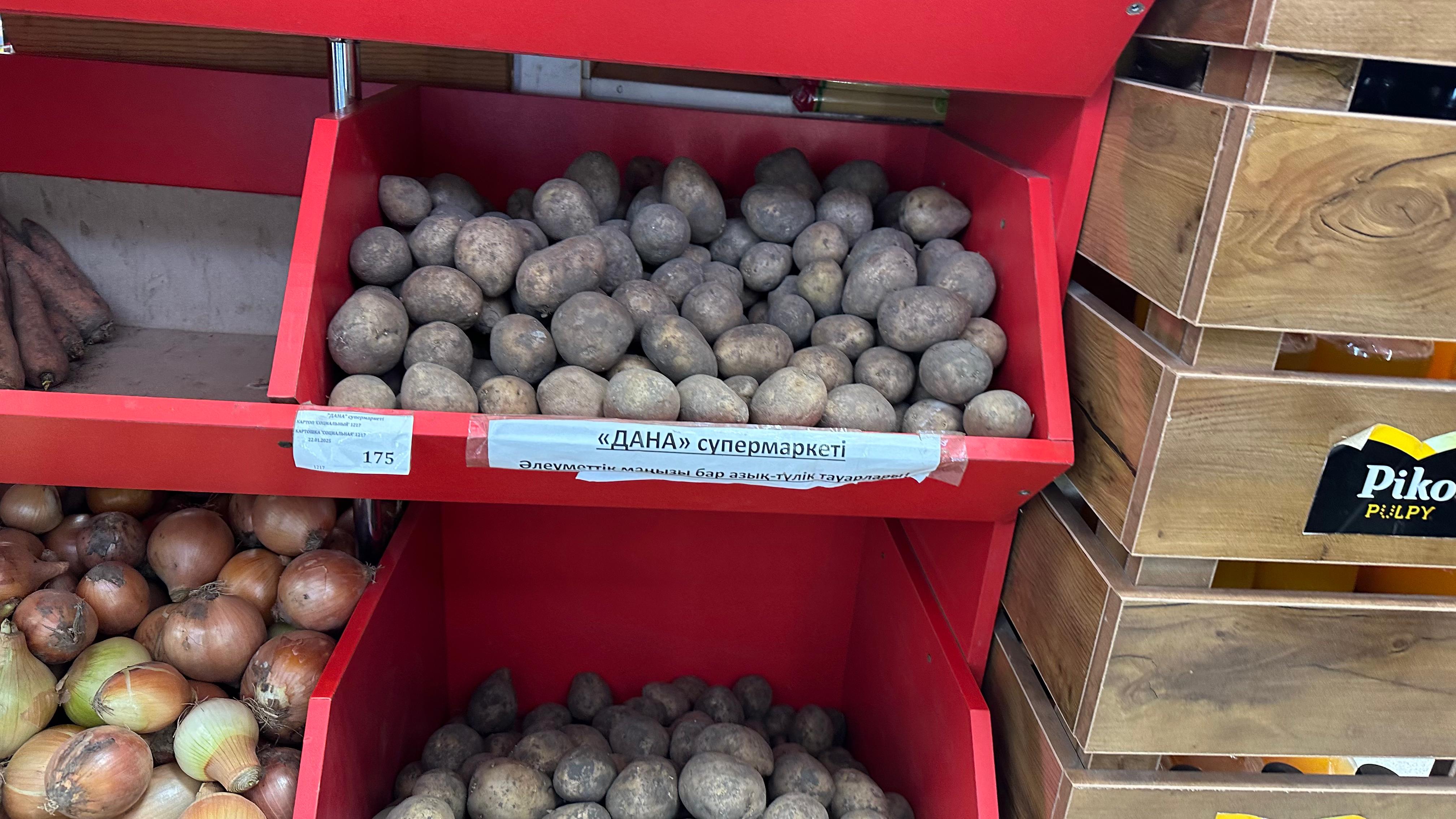 В торговой точке «Дана», расположенной в 12А микрорайоне, рядом с ТЦ «Мечта», социальный картофель действительно есть. Его цена – 175 тенге за килограмм, даже ниже указанной стоимости.