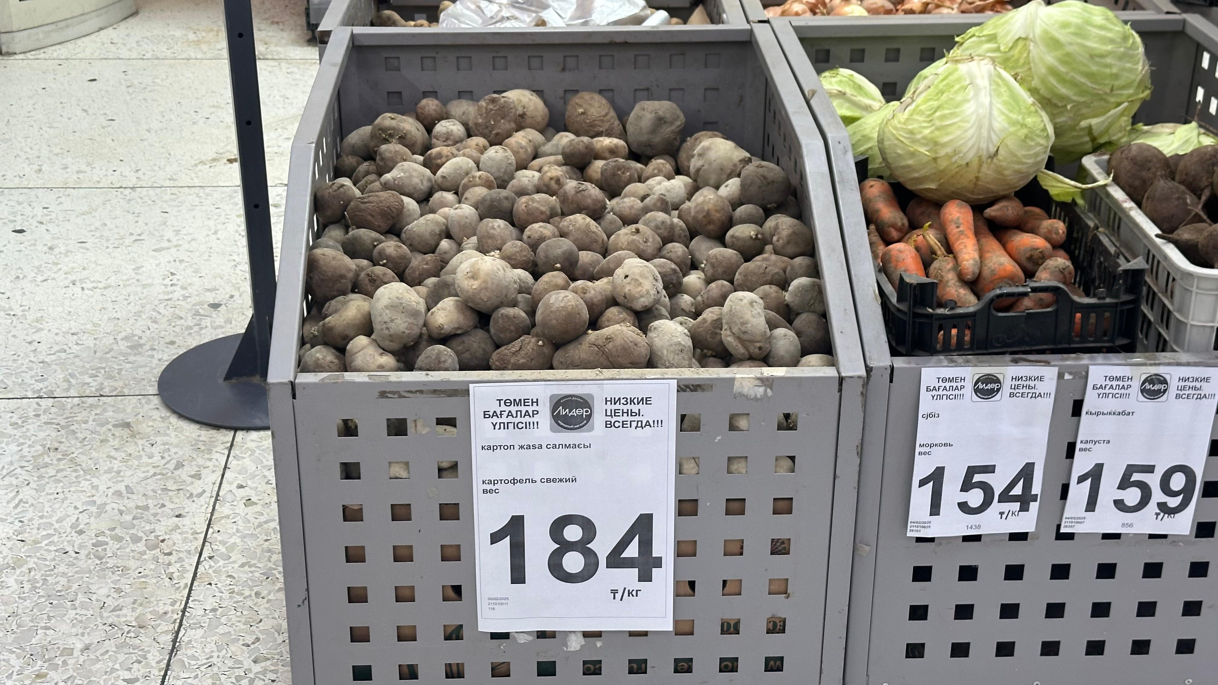 Есть социальный картофель и в супермаркете «Лидер», расположенном в 28 микрорайоне. Его стоимость соответствует цифрам от акимата – всего 184 тенге за кило. При рыночной стоимости от 350 до 400 цена для покупателей кажется невероятной.