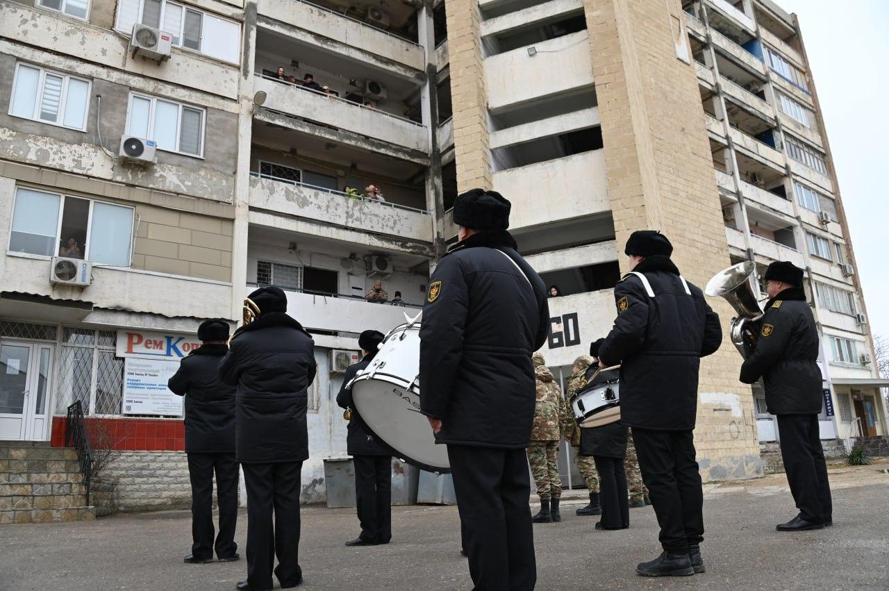 Военный оркестр Военно-морских сил исполнил несколько праздничных композиций прямо под окнами ее дома, создавав атмосферу торжественности и уважения.