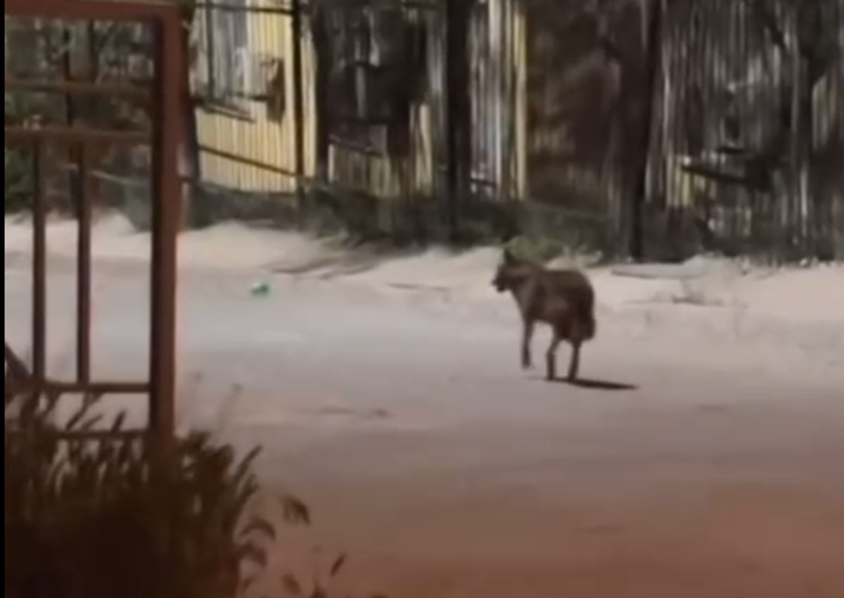 В Актау появился необычный гость — шакал, которого местные жители заметили в 15-м микрорайоне.Судя по кадрам, дикое животное бегает по городу в поисках еды.