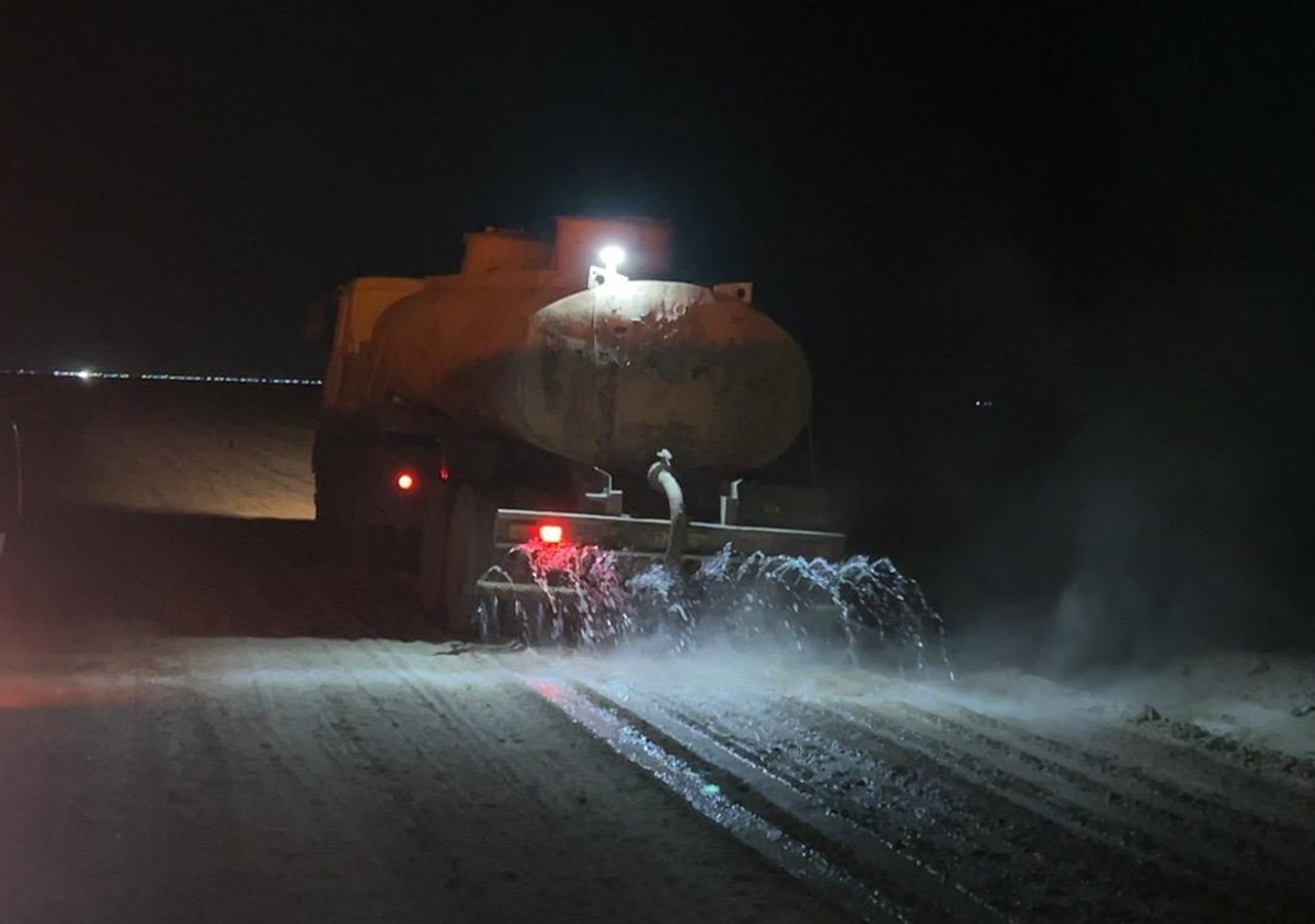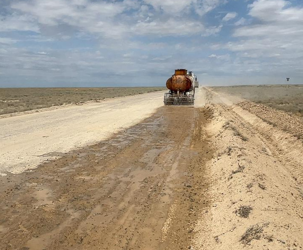 Сотрудники полиции вызвали на место представителей дорожной службы. Дорогу переодически заливают водой, чтобы пыль не поднималась столбом, — сообщили в пресс-службе полиции.