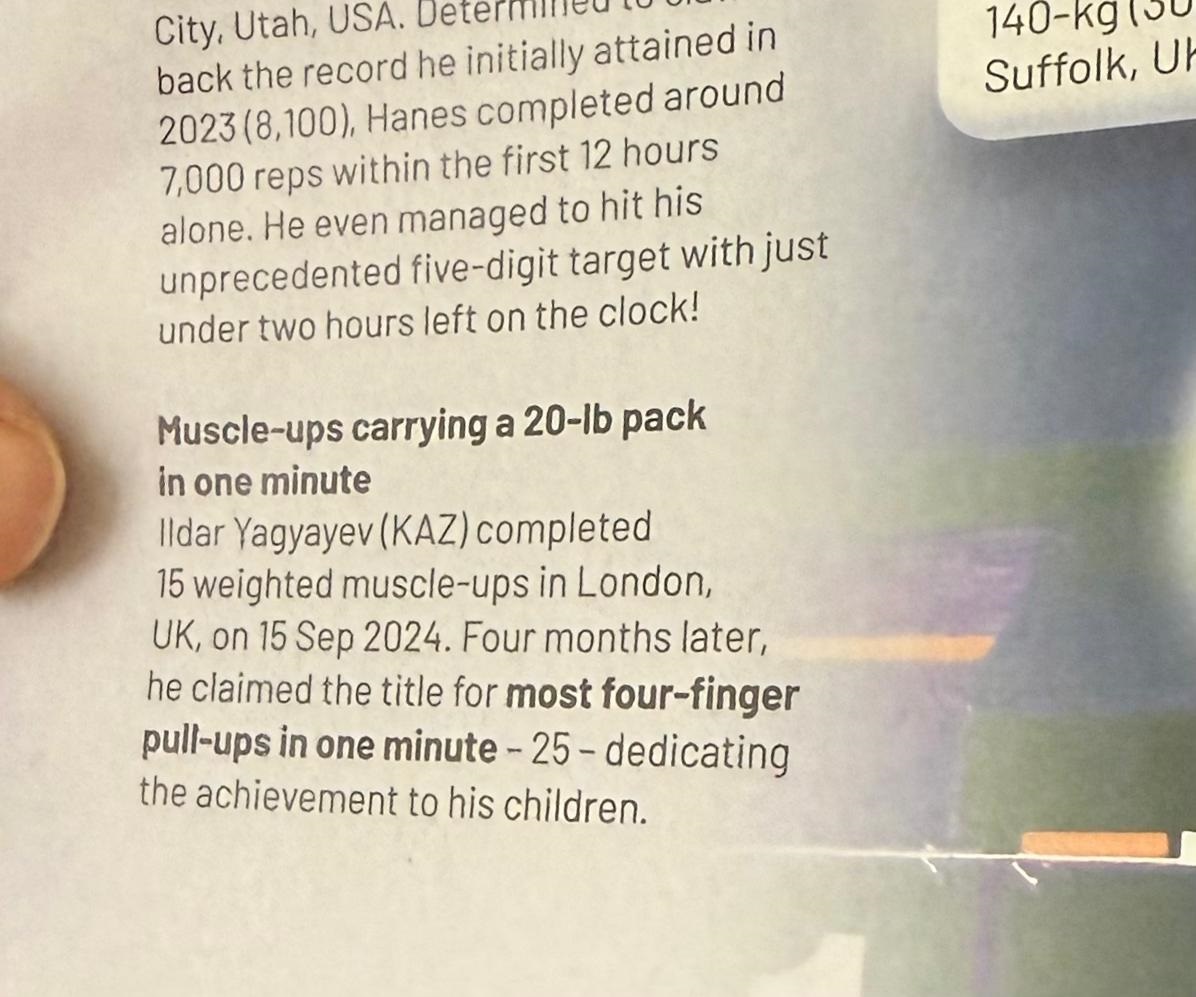 Ильдар Ягьяев рассказал, что спустя 16 лет восемь рекордов Гиннесса, сотни тысяч подтягиваний и десятки сорванных мозолей, его имя наконец появилось на страницах печатного издания Книги рекордов Гиннесса 2026, которое вскоре будет распространяться по всему миру.