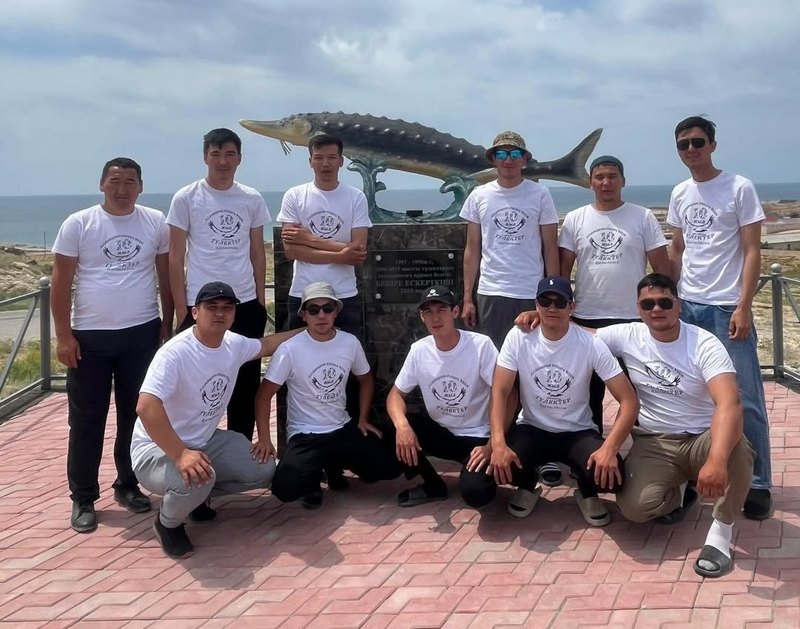В честь юбилея они установили декоративную скульптуру рыбы «Бекіре» (Осетр) как один из символов природы родного края.