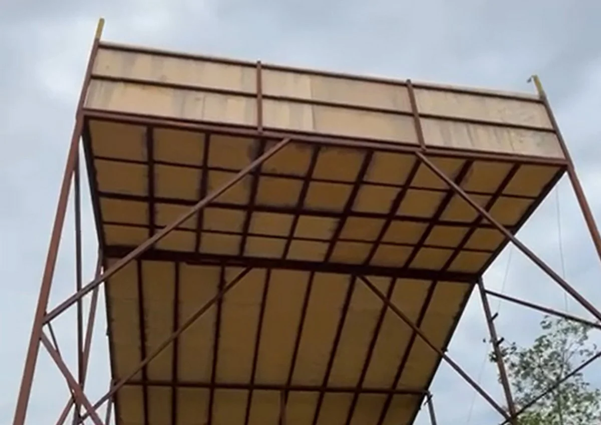 Горка уже начала покрываться ржавчиной – металлические швелера не были покрашены, из-за чего под воздействием дождей и влаги начали корродировать. Кроме того, сварочные швы выглядят слабо, а сама конструкция вызывает сомнения в устойчивости, особенно при массовом скоплении детей.