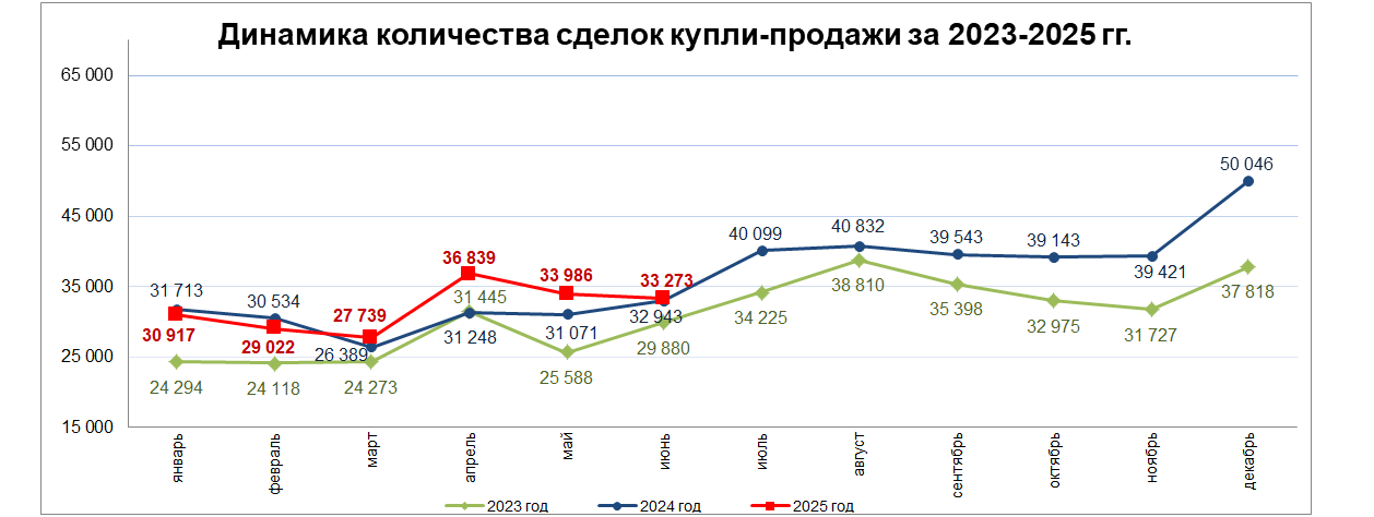 Рост сделок по стране за первое полугодие составил 4,3% по сравнению с аналогичным периодом 2024 года.