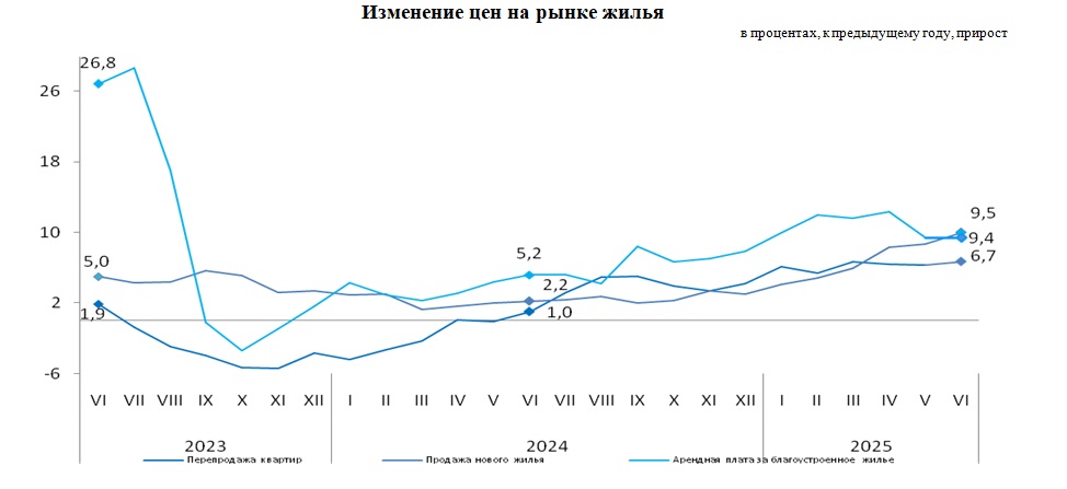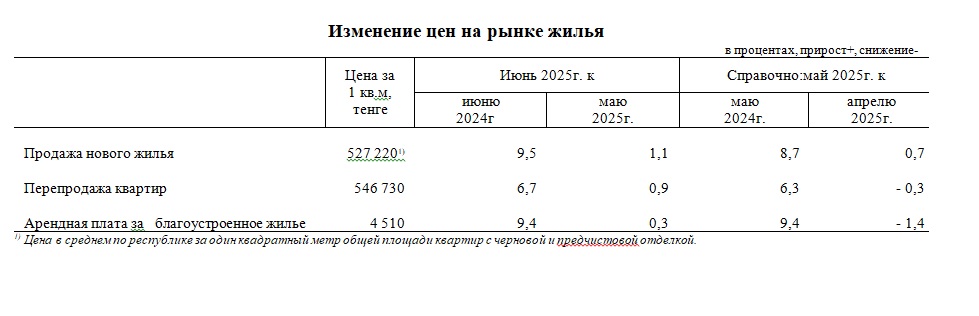 Тем не менее, цены на жильё продолжают расти. По сравнению с июнем прошлого года, стоимость нового жилья в Казахстане подскочила на 9,5%, перепродажа квартир – на 6,7%, аренда – на 9,4%.