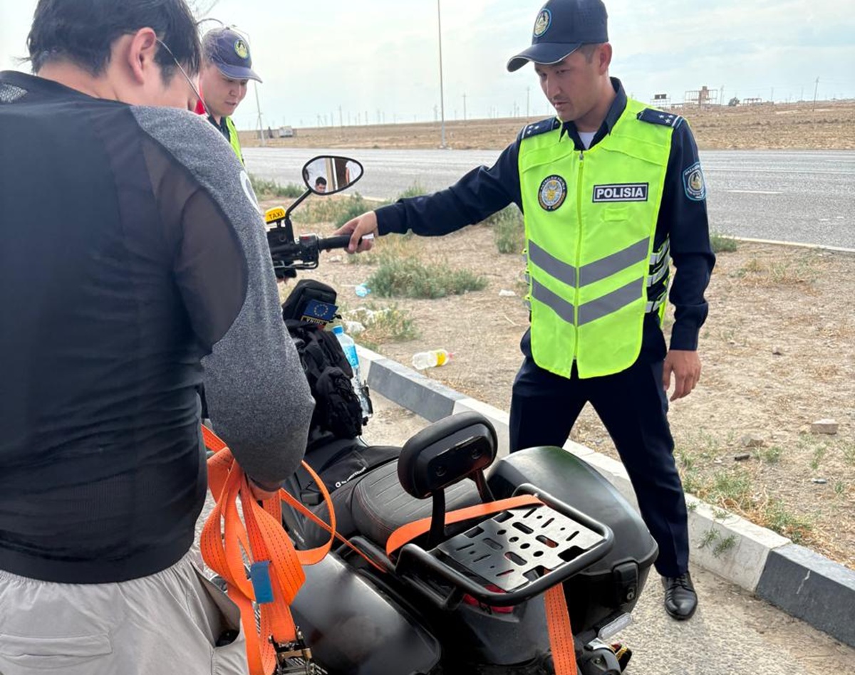 По информации ведомства, 10 августа на трассе Шетпе – Сайөтес – Бейнеу сотрудники патрульной полиции Мангистауской области заметили мотоциклиста — гражданина Китая, который стоял на обочине напротив села Сайөтес и не мог продолжить путь в сторону Актау.