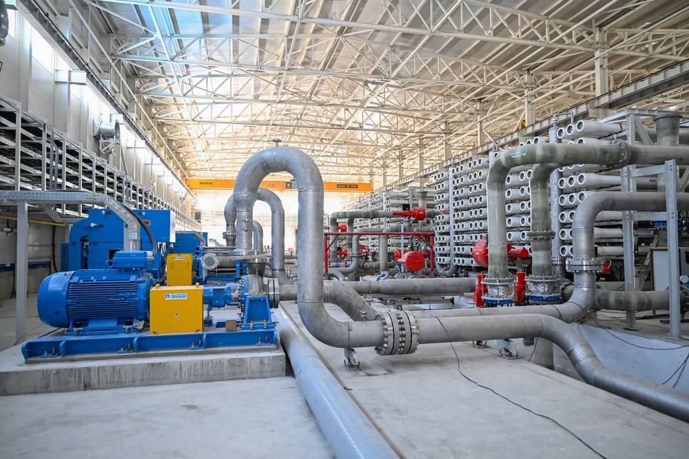Строительно-монтажные работы на предприятии завершили 30 мая текущего года, после чего начался пусконаладочный процесс. 9 июля запущен весь цикл технологического оборудования, в ходе которого произведена проверка и промывка производственной линии по опреснению морской воды.