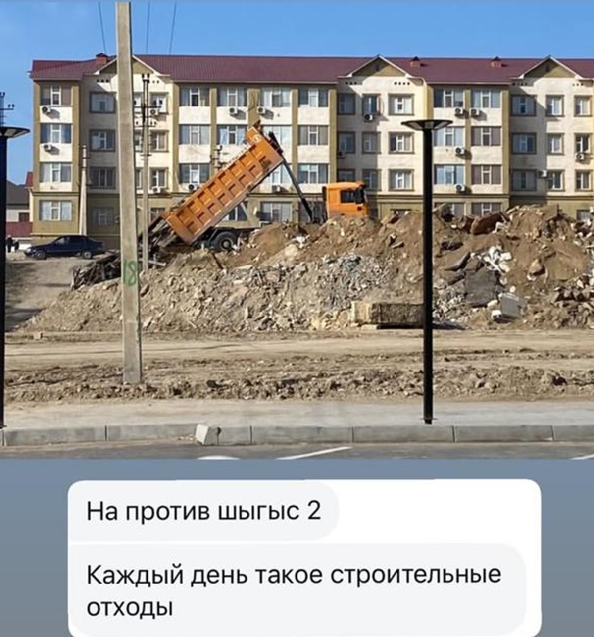 Мы хотим пожаловаться на ситуацию перед рестораном «Шахназ». Там свалены строительные отходы вперемешку с мусором. Рядом находятся школа и детский сад, а по этой территории ежедневно проходят и играют наши маленькие дети, - жалуются сельчане.