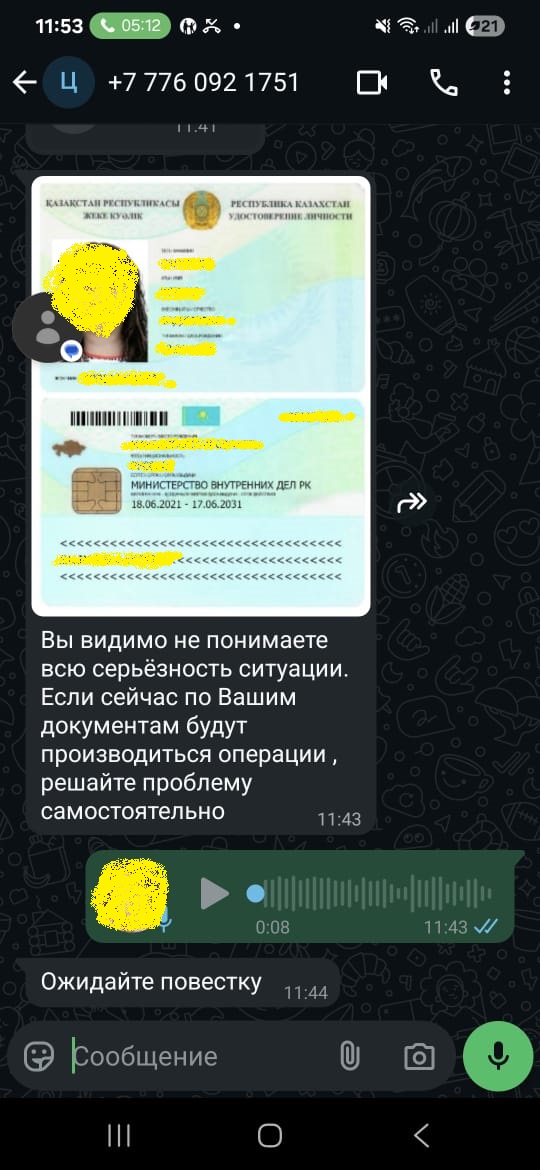 Спустя некоторое время в WhatsApp ей написал человек, представившийся «сотрудником полиции». Он уверял, что её счета «пытаются взломать» и требовал сотрудничества.