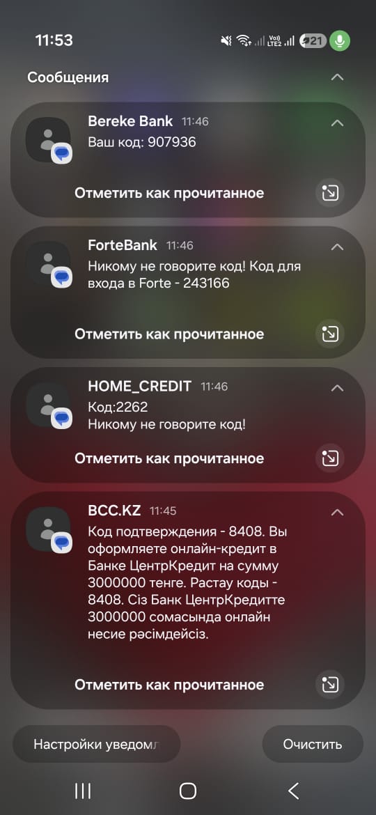 Я сразу насторожилась, потому что знаю: полиция не ведёт переписку в мессенджерах. Но меня смутило то, что начали приходить SMS из разных банков с уведомлениями о том, что на меня якобы оформлен кредит. Сообщения выглядели как настоящие, с логотипами и названиями банков,  рассказала Гаухар.