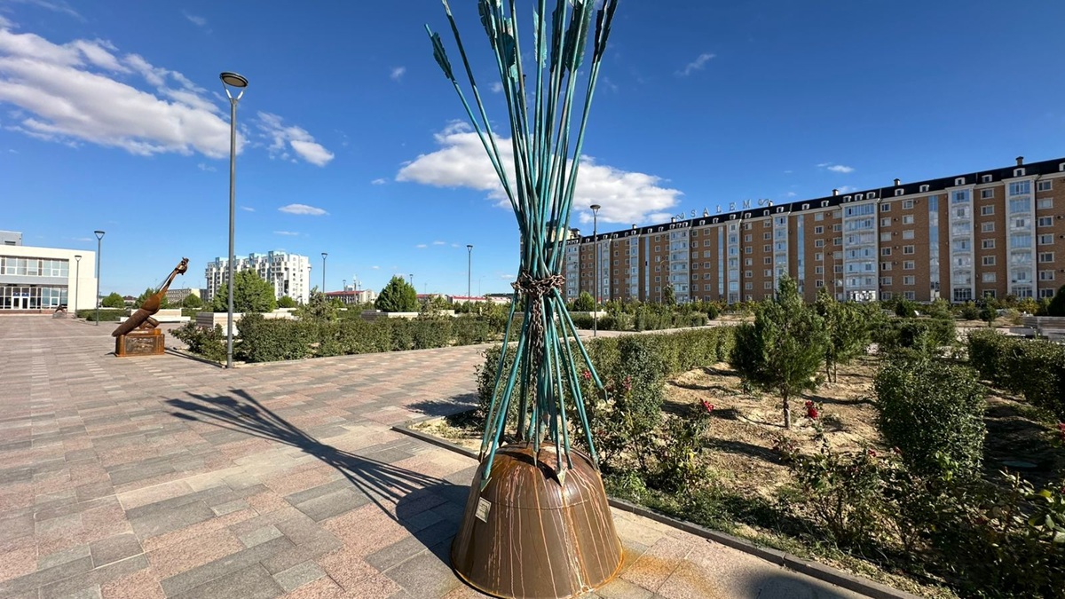 Необычные малые архитектурные формы установили на площади, между областной универсальной библиотекой им. Кабиболлы Сыдиыкова и областным историко-краеведческим музеем им. Абиша Кекилбаева в 19А микрорайоне.