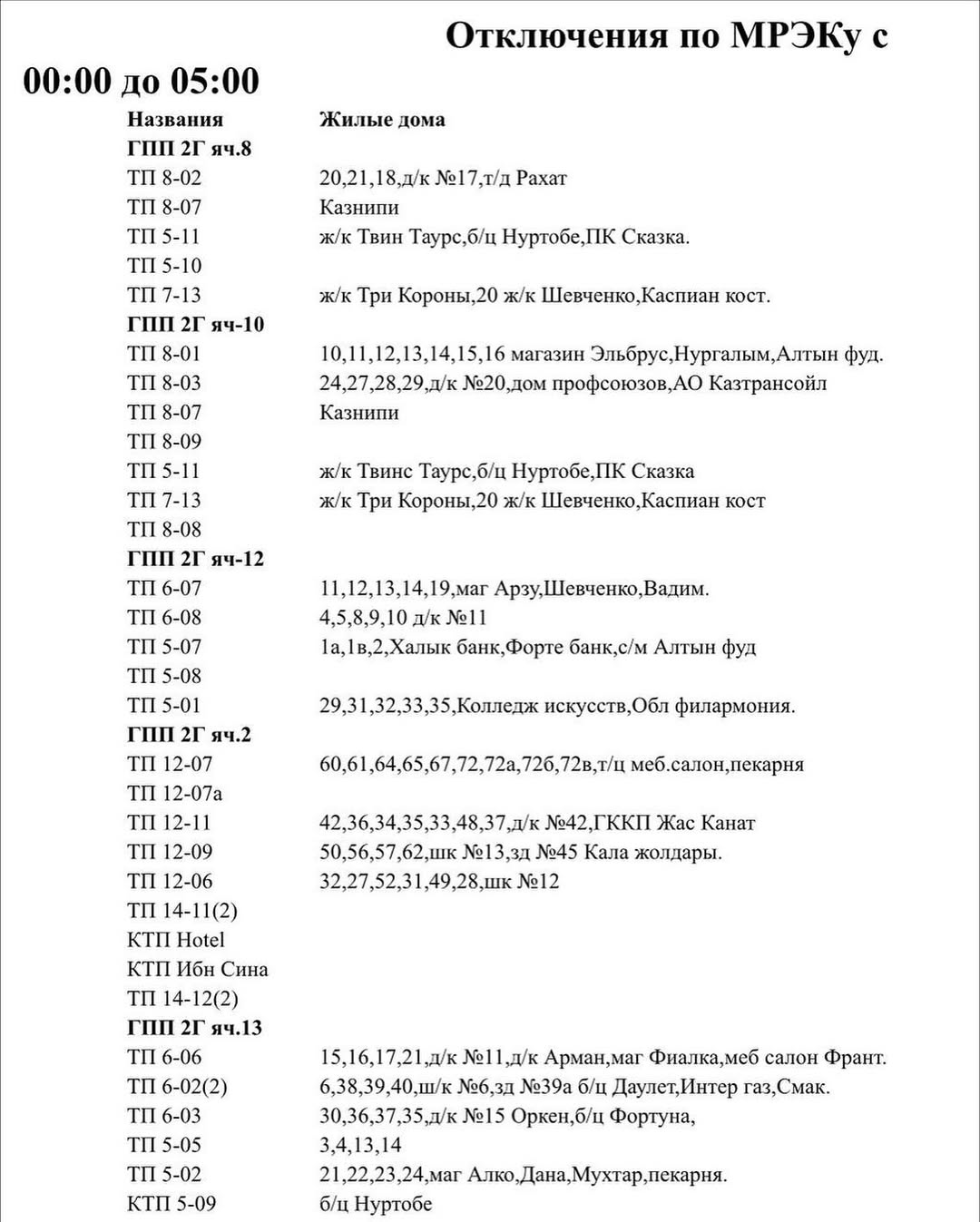 Десять жилых массивов останутся ночью без света из-за ремонтных работ АО «МРЭК», передает Lada.kz.