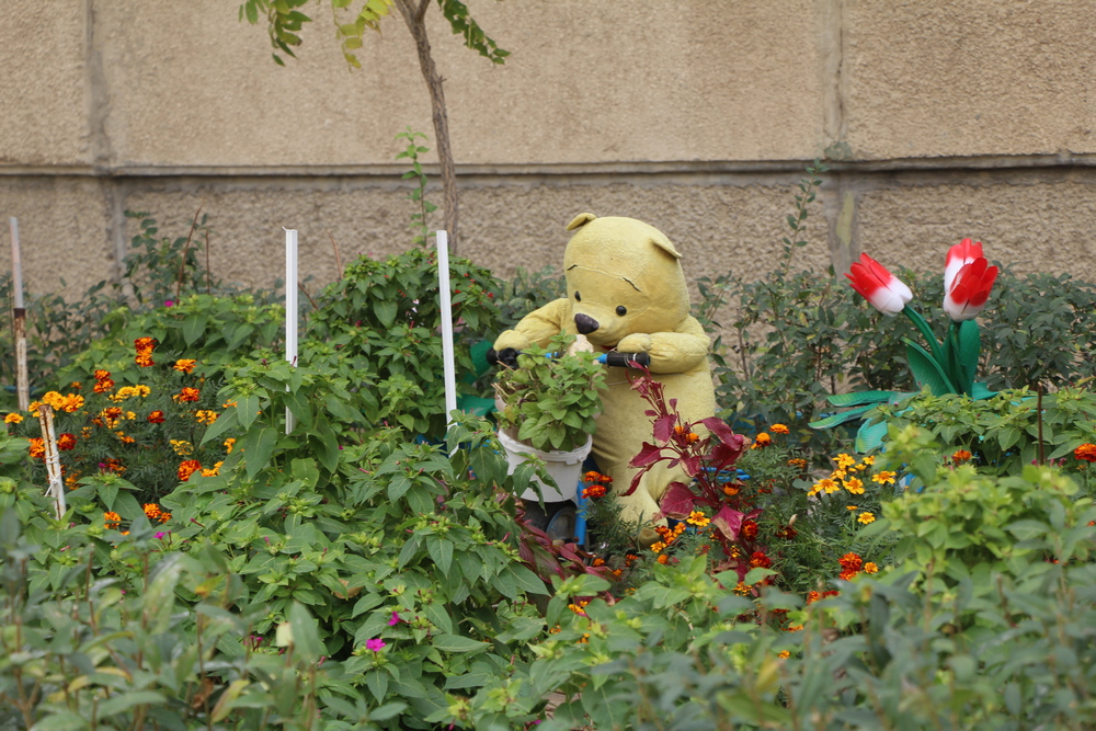 Во дворе действительно заметны следы благоустройства: ровные клумбы, ухоженные дорожки, аккуратные посадки.