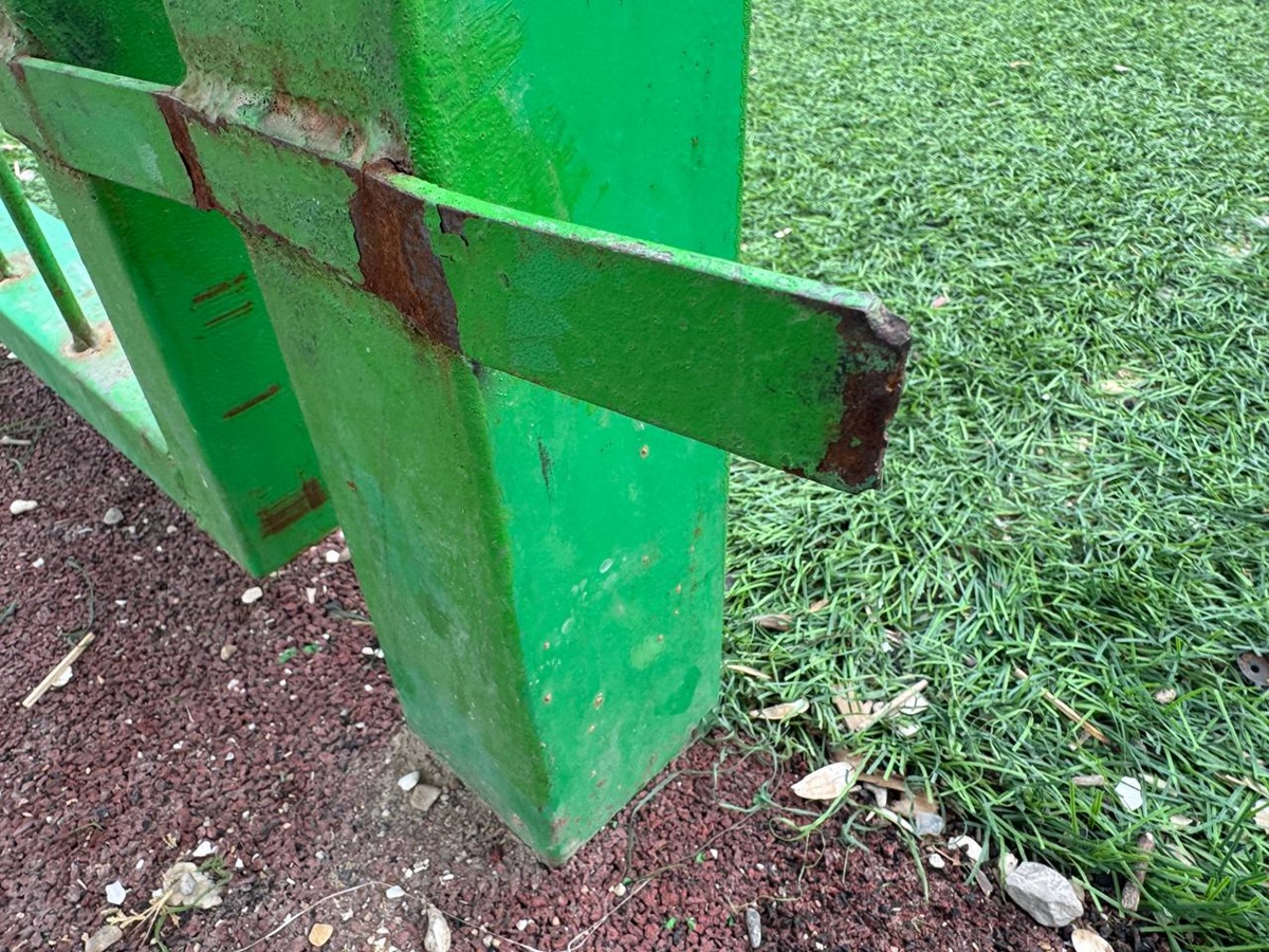 Буквально летом построили новое футбольное поле, а забор начал разваливаться уже через месяц. Трубы под краской оказались ржавыми, всё ломается даже от попадания мяча. Качество – ноль! Позор! Через некоторое время здесь вообще ничего не останется, - рассказал один из жителей.