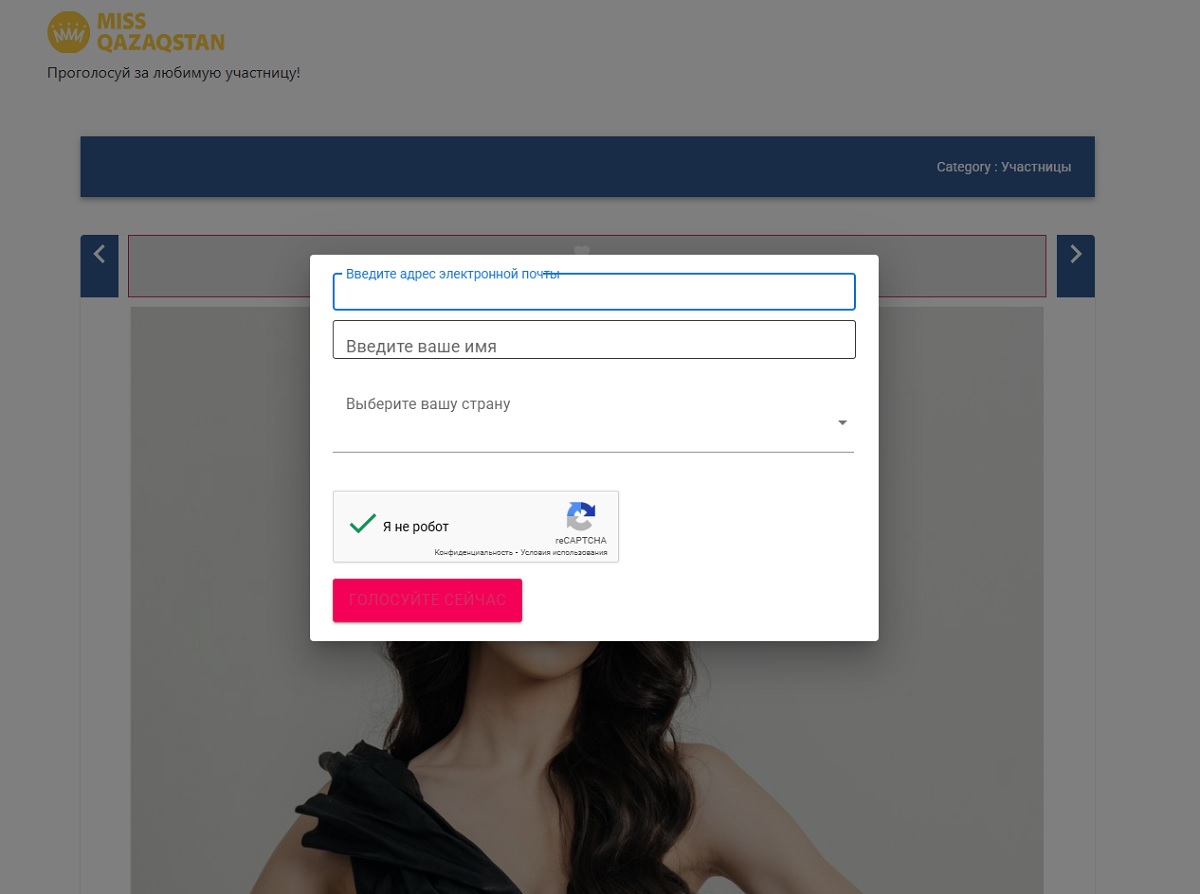 Чтобы принять участие в голосовании, нужно выбрать фото понравившейся участницы, указать своё имя и адрес электронной почты, после чего подтвердить голос.